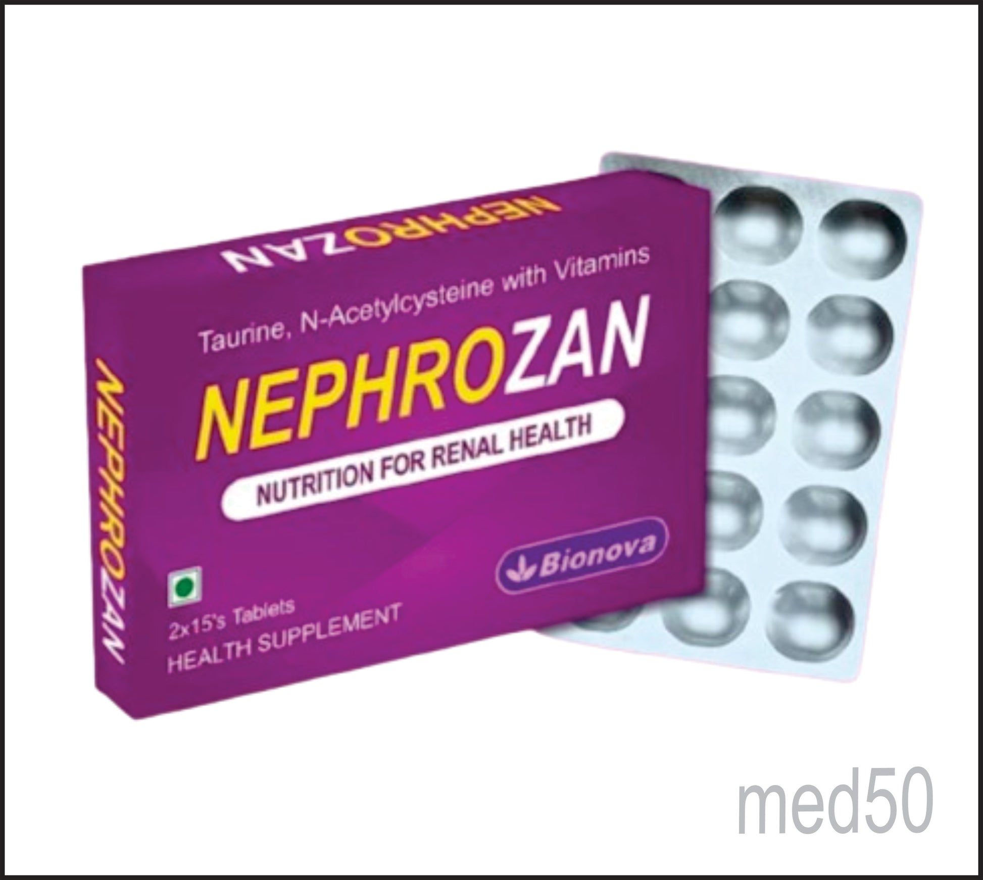 NEPHROZAN TABS (Taurine-500mg, N-Acetyl Cysteine 150mg, Niacinamide - 14mg, Pyridoxine hl - 1.9mg, Riboflavin - 2mg, Folic acid - 220mcg, Cynocobalamine 2.5 mcg)