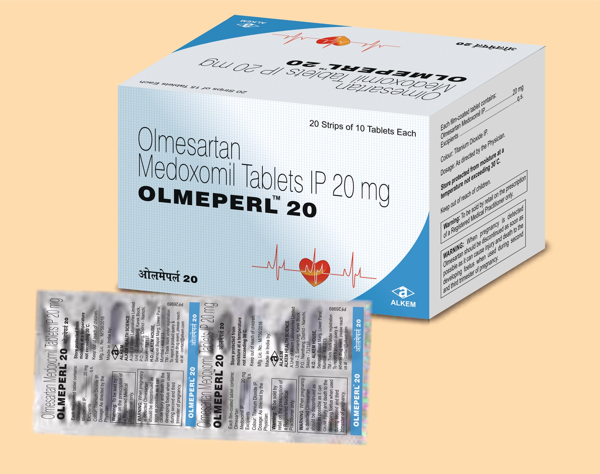 Olmeperl-20 Tablet contains Olmesartan Medoxomil, an angiotensin II receptor blocker (ARB) that helps manage high blood pressure (hypertension). It works by relaxing and widening blood vessels, allowing smoother blood flow and lowering blood pressure. Regular use helps reduce the risk of stroke, heart attack, and kidney problems caused by long-term hypertension.